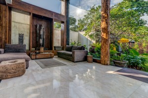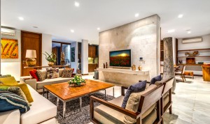 At night this room is transformed with the night lights of the villa's courtyard area.