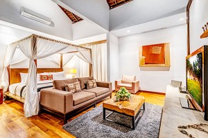 The room is well appointed with modern paintings and elegant Balinese ornaments completed with a Sony 52" TV, Bose I Pod Dock and Smart Music System.